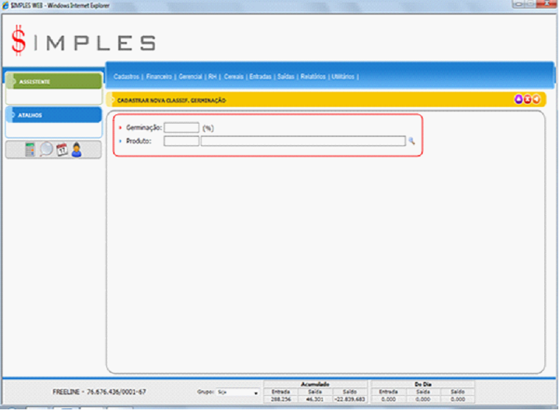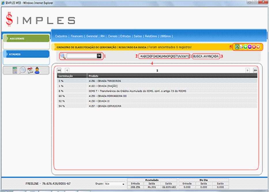 - Pesquisa: Permite executar uma pesquisa usando o percentual de Germinação.