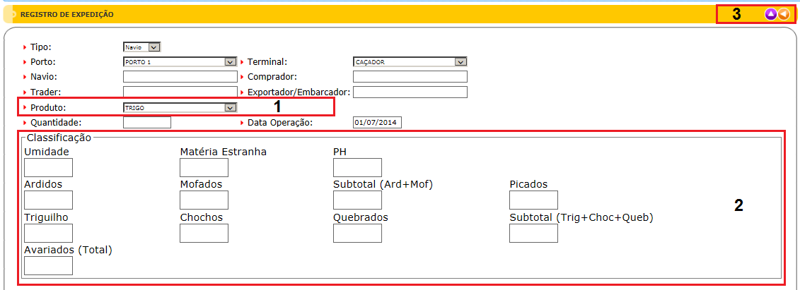 Para acessar Cereais - Registro de Expedição , use o Menu “Cereais – Registro de Expedição”.