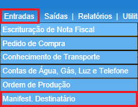 Para acessar Manifest.Destinatário, use o Menu “ Entradas-Manifest.Destinatário”. Será apresentada a tela principal de Manifest.Destinatário.
