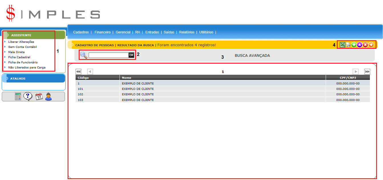 A tela do Cadastro de Pessoa possui quatro elementos principais que executam funções distintas: