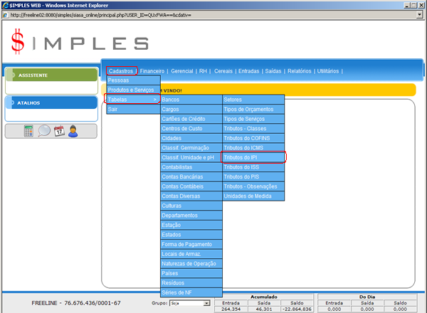 - Obs. dos Tributos: Atalho para o cadastro de Observações dos Tributos.